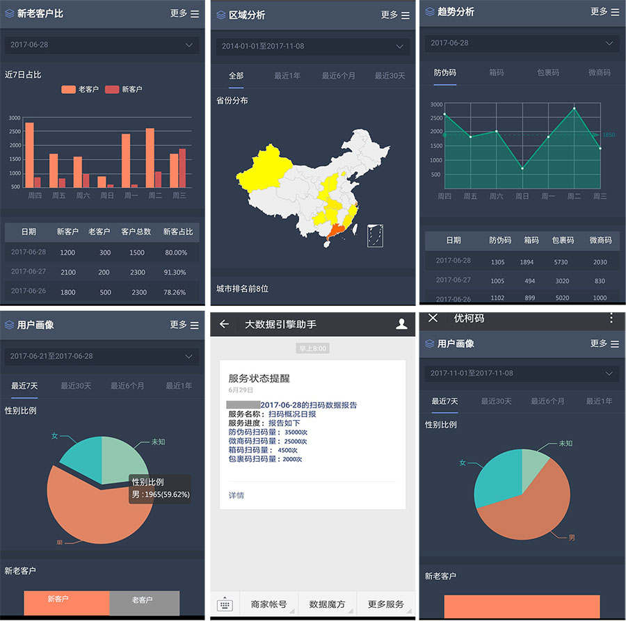 对雨林古坊茶而言,茶叶的销售情况和产品分布才是他们关注的点,茶行业痛点在于,无法明朗市场动向,不知道多少茶叶是被消费了,不知多少是被收藏了,导致供不应求或供大于求,对企业而言都是损失,运用米多大数据引擎系统之后,消费者或者零售网点扫码后,每个扫码数据都可通过后台系统获取,形成系统化的大数据,继而形成消费者画像或者门店数据。企业运营者据此掌握各产品各个渠道的产品扫码情况及产品流通收藏情况,进行数据分析,为企业的精准二次营销提供大数据决策支持,大幅度降低企业营销成本。